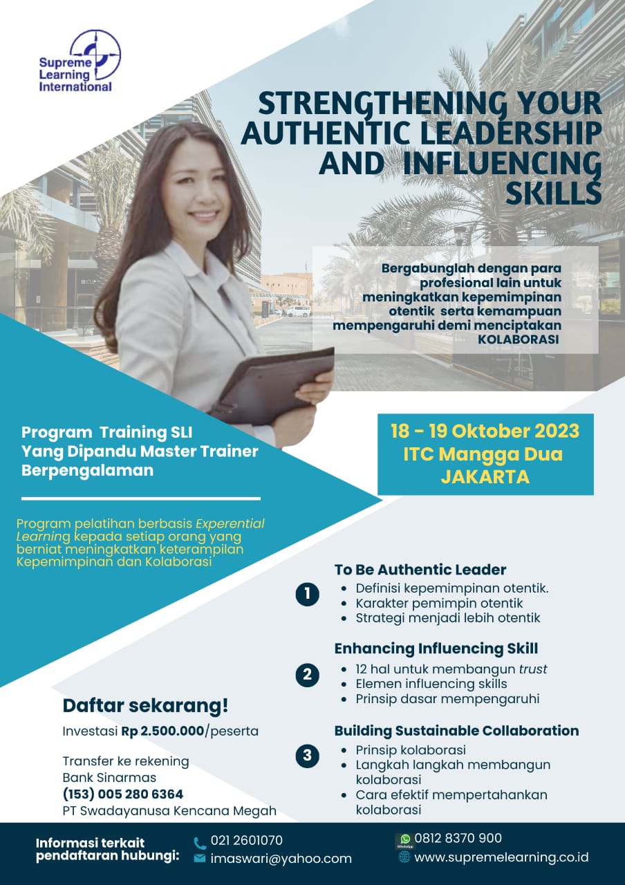 Authentic Leadership Training I Public Class Supreme Learning International I The Rizt-Carlton Hotel, Jakarta 2-3 Juli 2025 I 09.00 - 18.00 WIB