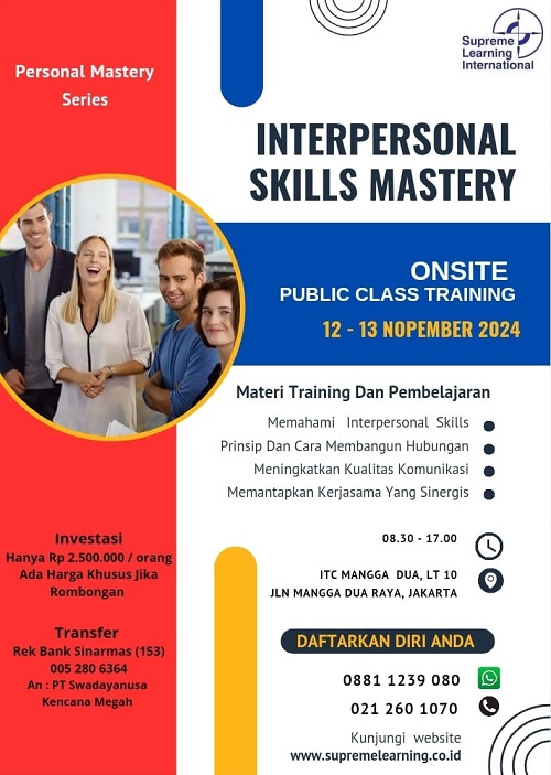 Interpersonal Skills Mastery I Public Class SLI I Jakarta, 12 - 13 Nopember 2024