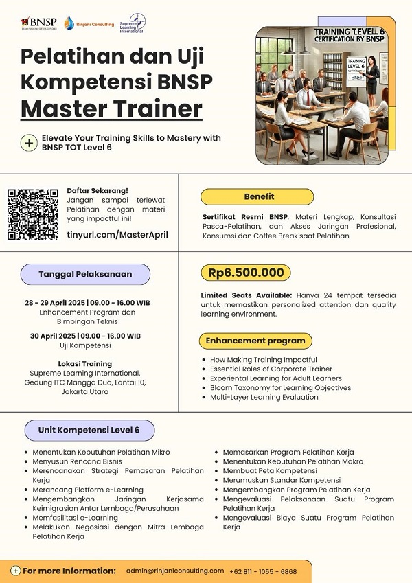 Pelatihan dan Uji Kompetensi BNSP Master Trainer I Rinjani Consulting I Supreme Learning International 2025